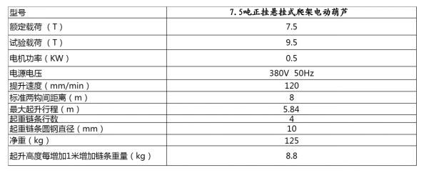產(chǎn)品名稱:7.5噸正掛懸掛式爬架電動葫蘆